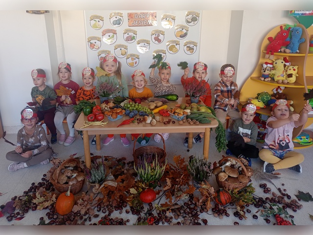 - Leśne skarby: liście, kasztany, żołędzie, orzechy, jarzębinę, szyszki, grzyby.