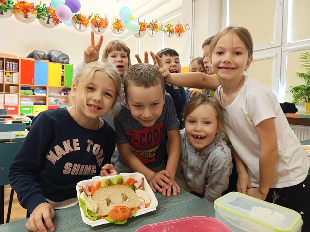 Gratulujemy klasie 1b wspaniałej pracy! Pamiętajmy, że samodzielne przygotowanie zdrowego śniadania to klucz do dobrych nawyków na przyszłość.