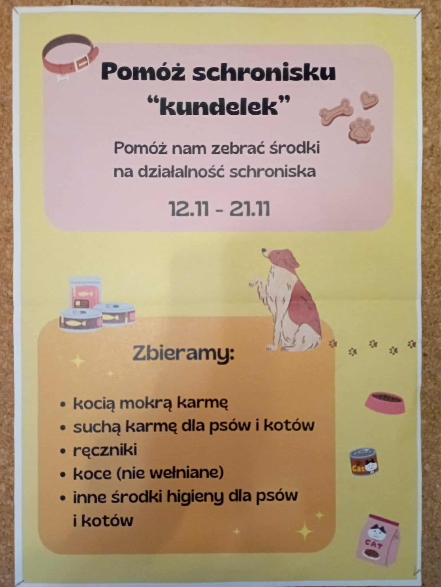 Nasza szkoła włączyła się do akcji pomocy dla zwierząt. Samorząd Uczniowski zachęca do wzięcia udziału w zbiórce która trwa do 21.11.25r. (piątek).
