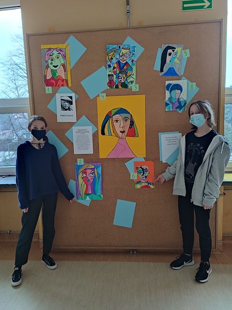 Uczniowie wzięli udział w szkolnym konkursie „Ja – młody Picasso” i stworzyli portrety zainspirowani dziełami tego wybitnego twórcy. Jury – w postaci uczniów uczących się języka hiszpańskiego – zagłosowali i wybrali swoich faworytów. Nagrody otrzymały uczennice z klasy VIII B.